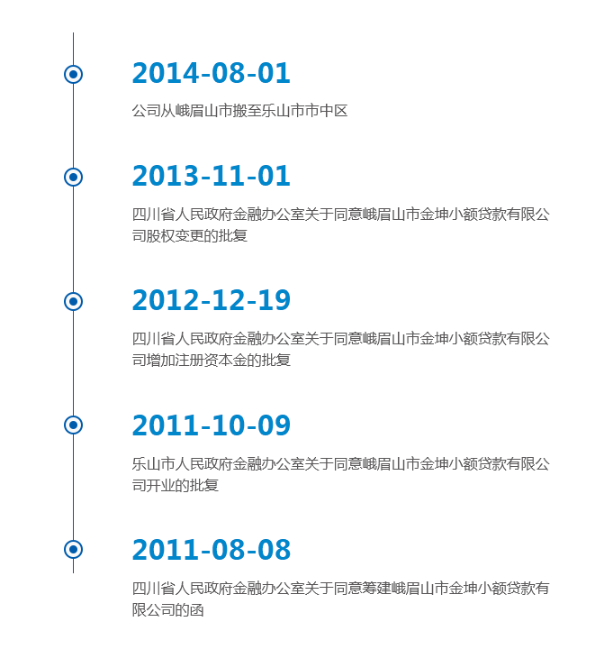 峨眉山市金坤小額貸款有限公司成立于2011年10月10日,由四川能投和四川水電集團等發(fā)起,經(jīng)四川省政府金融辦批準設立的樂山市第一家國有控股小額貸款公司,注冊資本金為2億元人民幣。